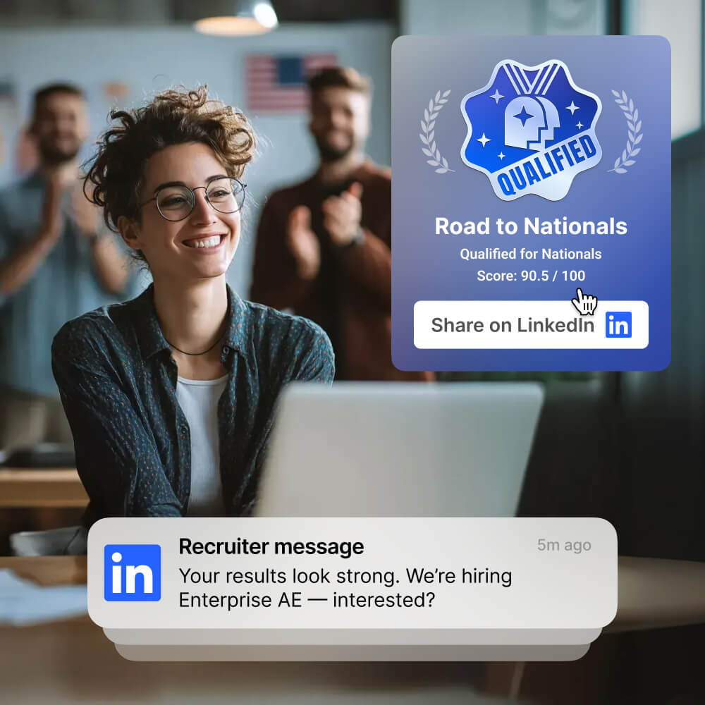Public leaderboards, recognition, prizes, and LinkedIn sharing are available after identity verification and user consent.